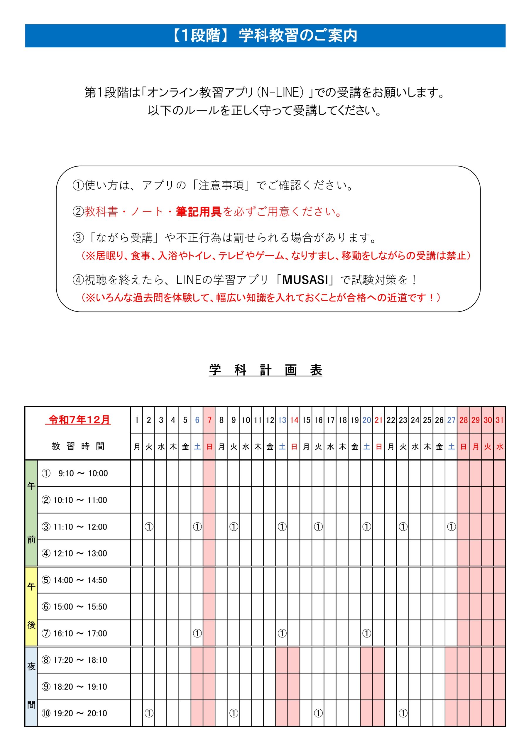学科予定表